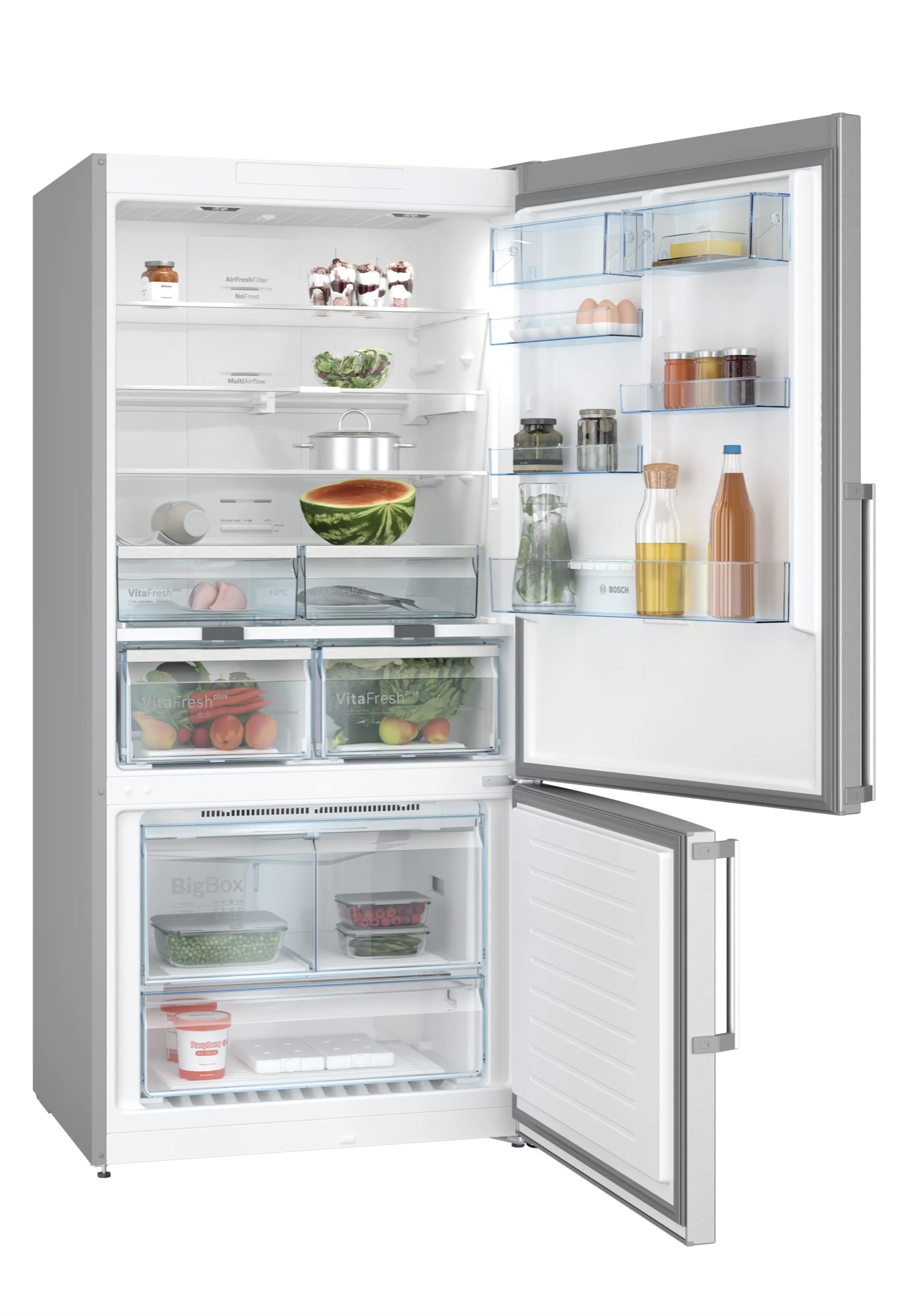 BOSCH FREE-STANDING FRIDGE-FREEZER WITH FREEZER AT BOTTOM NOFROST 631 L STAINLESS KGN86CI3E8 Total capacity 682 L Net capacity: 631 L Total cooling capacity 152 L Dimensions (H x W x D): 186.0 cm x 86.0 cm x 81.0 cm Net capacity 4 for freezing space: 87 L