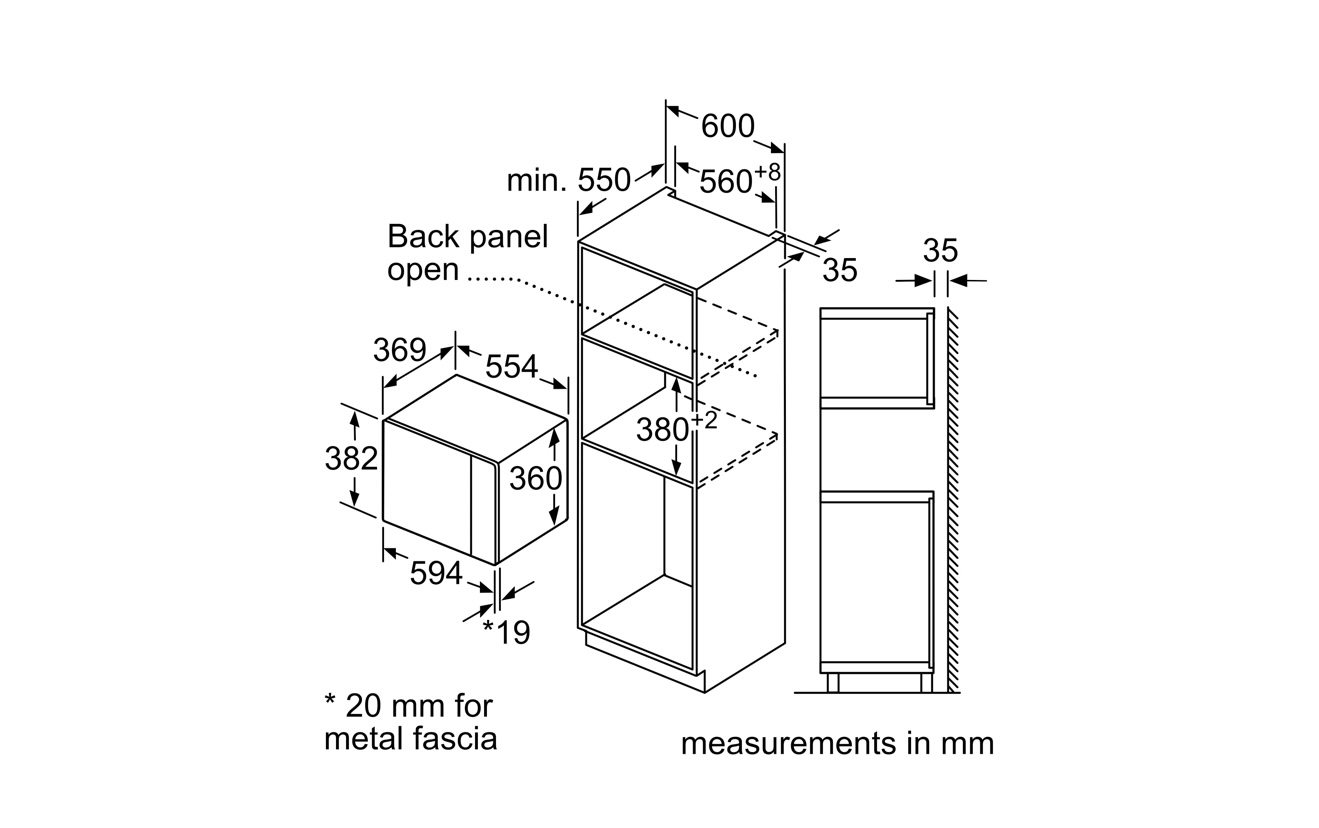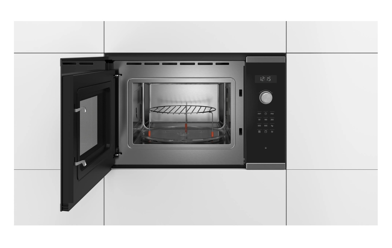 Bosch Serie | 6 Built-In Microwave Oven Stainless Steel – BEL554MS0M Installation typology Built-in Cavity capacity 25 l Main colour of product Stainless steel Microwave power levels (W) 90, 180, 360, 600, 900 W Number of Power Levels 5 Integrated Cleaning system Hydrolytic Number of automatic programmes 8